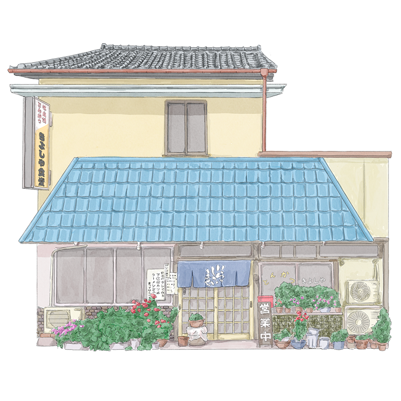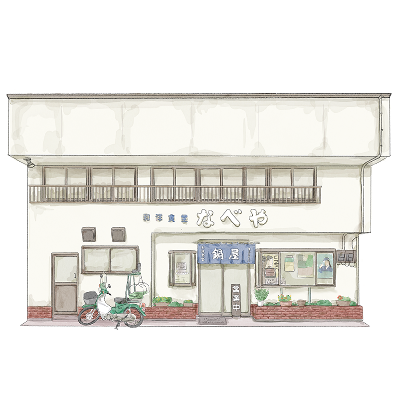下仁田町の中央通りを中心とした昭和レトロな飲食店の外観をイラストで表現。材質も木製にこだわり軽くて温かみも感じられます。